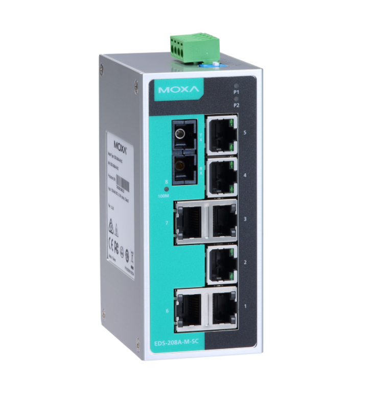 MOXASwitch industriale non gestito 7 porte rame 10/100 1 porta fibra 100fx monomodale con connettore sc, 12-... continua